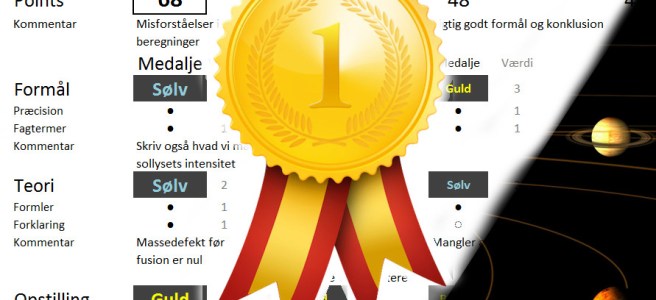 I denne omgang har prøvet at indbygge en fornemmelse af fremskridt i mine tilbagemeldingerne på fysikrapporter. Med inspiration fra computerspillenes verden har jeg givet mine elever points efter hvor svær opgaven er, ganget med hvor godt de har løst den. Selvom man så f.eks. skulle falde en karakter fra 7 til 4 i løbet af et år, kan man stadig se sin læring tydeligt: Man løser sværere opgaver, og opnår derfor flere points i slutningen af forløbet end da man startede i 1.g.